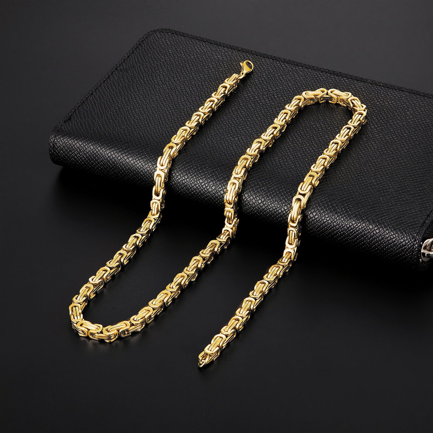 Cette chaîne byzantine en acier premium transforme votre look instantanément. Robuste, raffinée et conçue pour durer éternellement.